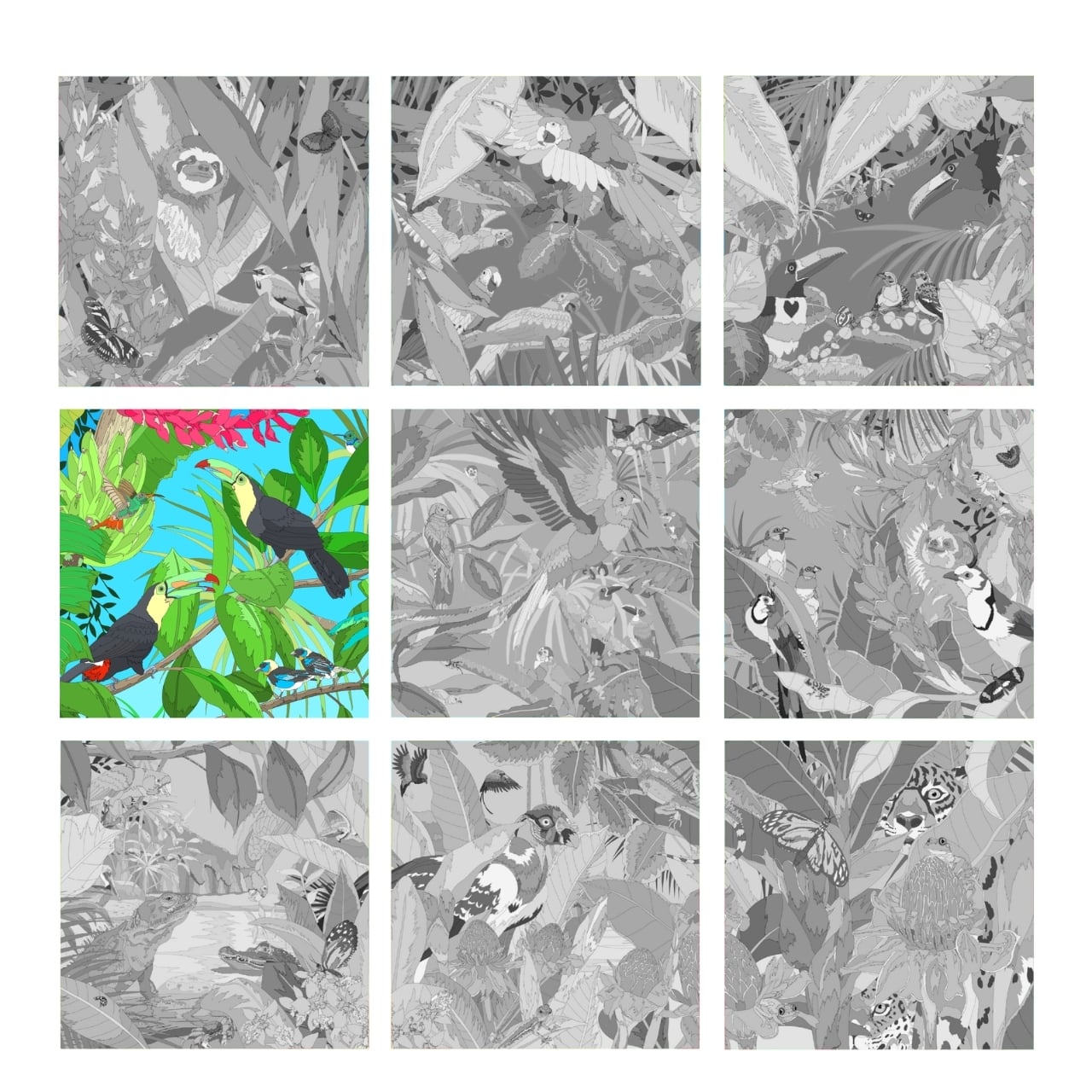 サンショクキムネオオハシ/キンズキンフウキンチョウ/エメラルドハチドリ/ハイバラエメラルドハチドリ